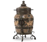 Тандыр «Перс Толпар» представлен в коллекции в двух цветах — черный и слоновая кость. Глянцевая глазурь с персидским растительным орнаментом, защищая тандыр от налета пыли, капель жира и влаги, делает его более долговечным. А благодаря крылатому коню Толпар, изображенному на корпусе тандыра, он выглядит весьма эффектно. Это настоящее украшение приусадебного участка.