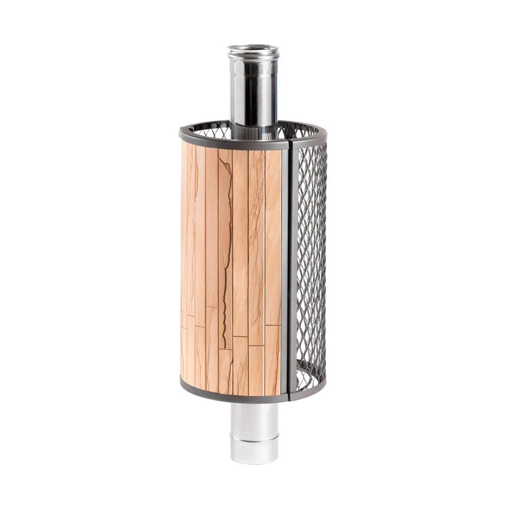Сетка-каменка защищает от излучения, уменьшая поверхность открытой трубы, снимает тепло с ее стенок и направляет его на прогрев камней.