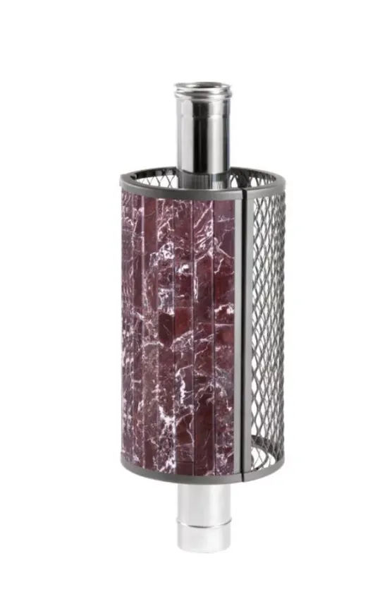 Сетка-каменка защищает от излучения, уменьшая поверхность открытой трубы, снимает тепло с ее стенок и направляет его на прогрев камней.