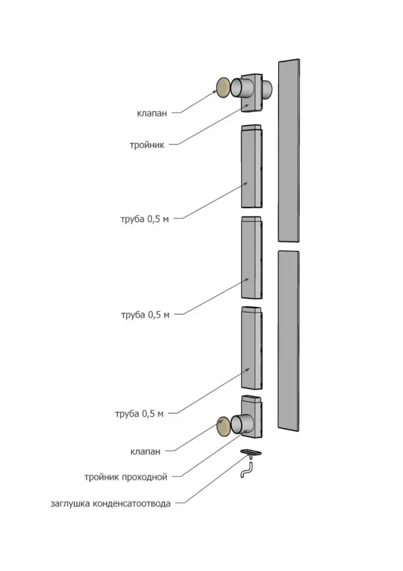 — тройник с заглушкой(конденсатоотвод) — 1 шт.