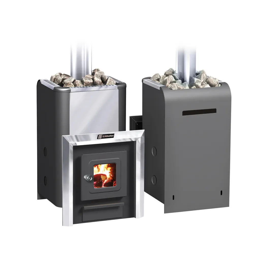 Особенностью данной печи является топка из жаростойкой нержавеющей стали и топочная дверца с жаростойким стеклом Robax (Германия) диагональю 19 см.