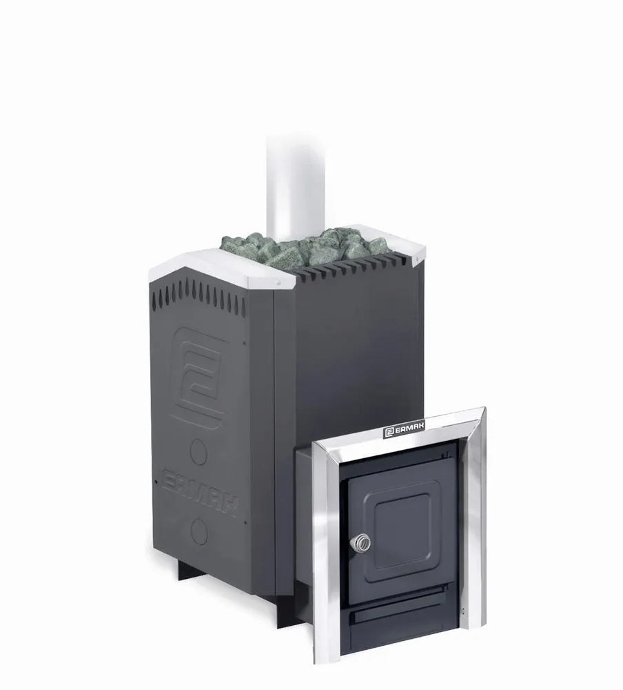 В модели ЕРМАК 20 Стандарт используется топка и каменка из стали, упрочненные в местах наибольших термических нагрузок до 8 мм.