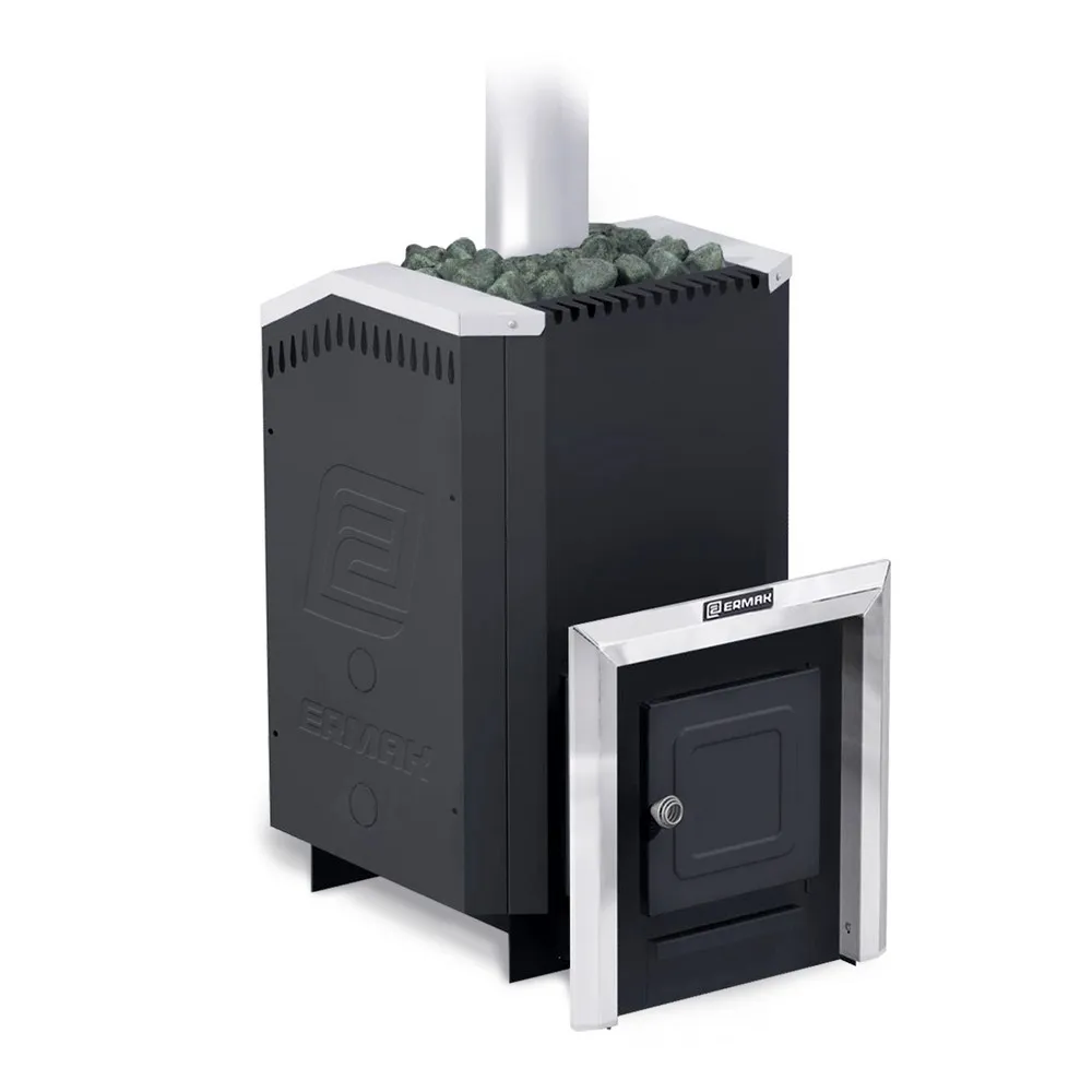 В модели ЕРМАК 20 Стандарт используется топка и каменка из стали, упрочненные в местах наибольших термических нагрузок до 8 мм.