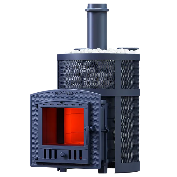 Модификация "Искандер ЗК" - это печь "Искандер" с закрытой каменкой, двумя паровыми пушками и дверцей для залповой подачи пара.