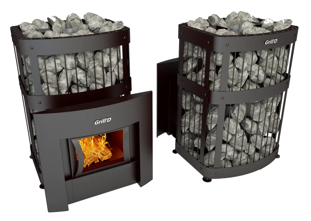 Закрытая каменка позволяет получать мелкодисперсный пар уже через 45 минут после начала топки, а наружная каменка наполнит вашу парную классическим легким паром.
