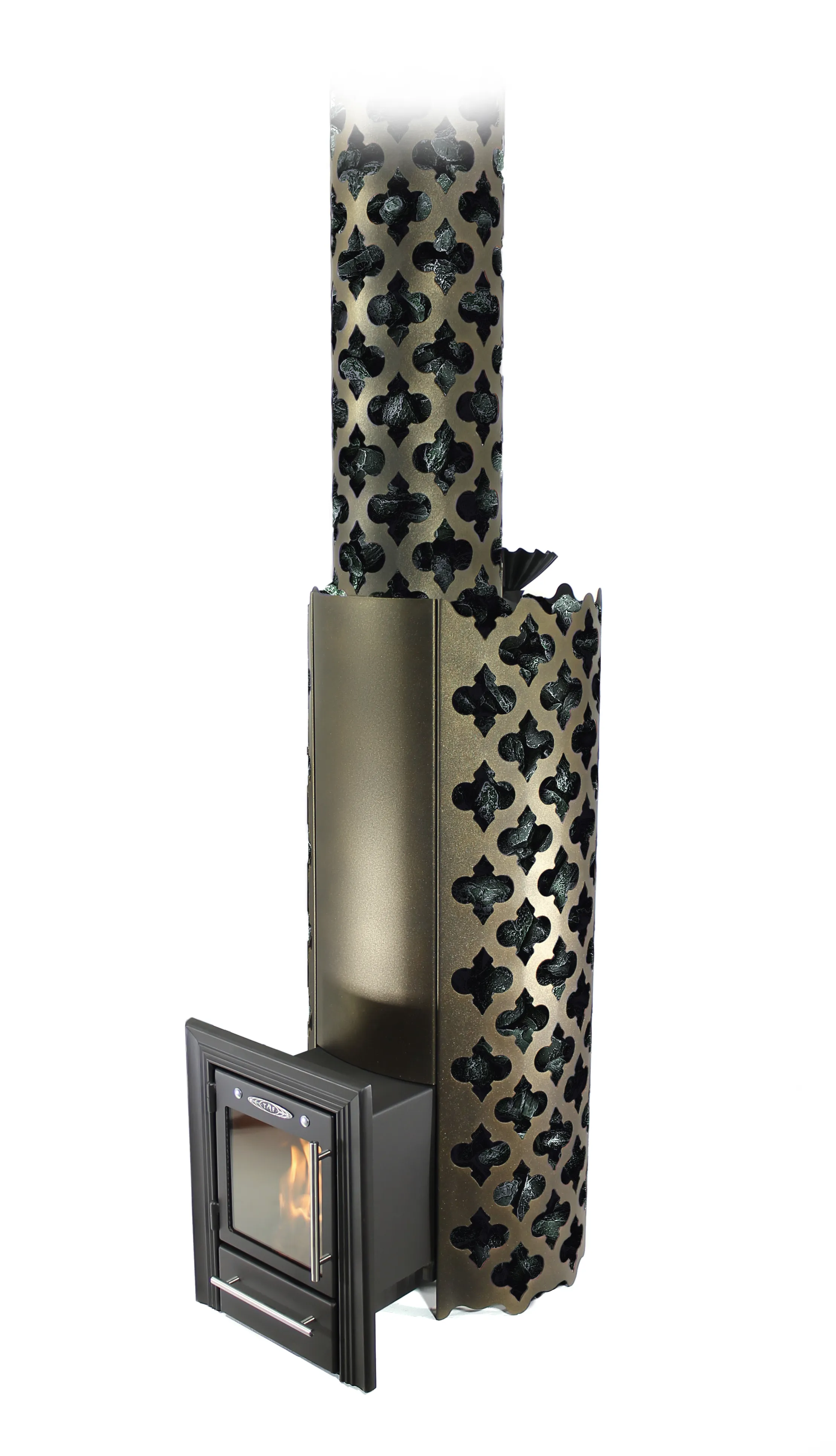 Сетка-каменка печи выполнена в виде восточного средневекового орнамента, состоящего из повторения одинаковых замысловатых геометрических элементов. Такой орнамент имеет европейское название arabesco (от итальянского «арабский»), давшее имя печи.