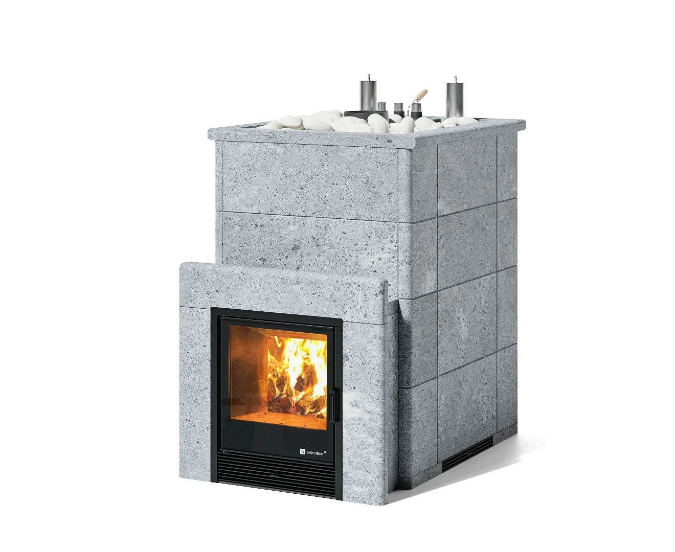 Печь оснащена съёмной закрытой каменкой, позволяющей разогревать находящиеся в ней камни до температуры 600 градусов.