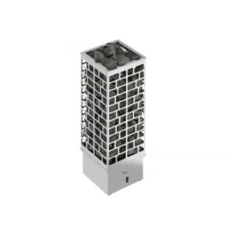 Корпус печи имеет нетипичную форму вертикального параллелипипеда с квадратным поперечным сечением. Нагревательные элементы находятся в центре электрокаменки и по краям обкладываются камнем. Готовая к эксплуатации печь напоминает каменную башню и позволяет поддавать воду во время парения не только сверху каменки, но и по всей поверхности корпуса. Это особенно сильно порадует любителей влажной русской бани. С каменкой Cubos CUB3-75Ni2-P добиться большого количества лёгкого мелкодисперсного пара можно в самые короткие сроки. Ценителям традиционной сухой финской сауны придётся по душе быстрый прогрев парного помещения и равномерное распределение тепла.