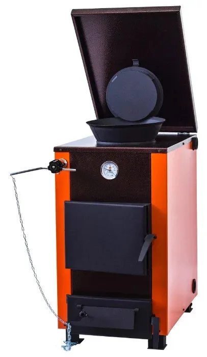 Для автоматического управления подачей воздуха в камеру сгорания на дверце зольника установлена воздушная заслонка, через цепочку управляемая энергонезависимым терморегулятором.