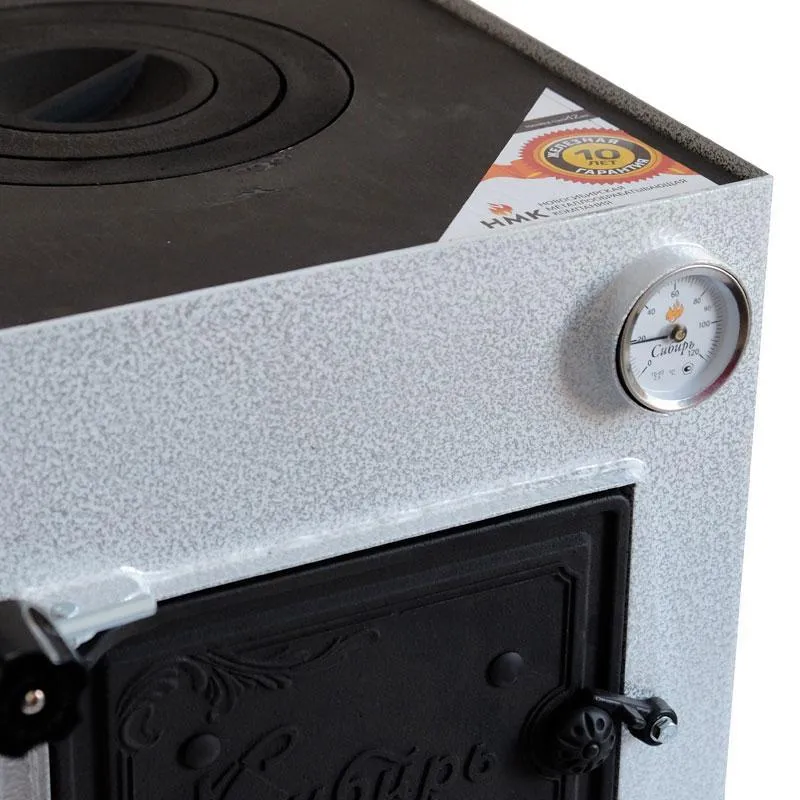 • Большие размеры дверки позволяют быстро загрузить и разжечь дрова. Через большие чугунные конфорки плиты можно загружать уголь из ведра.