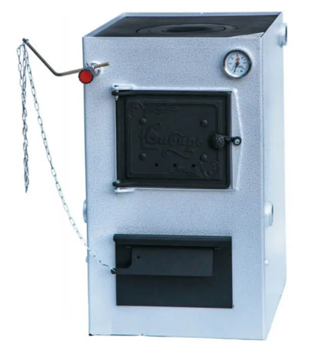 А водяная рубашка вокруг топочной камеры наиболее эффективно отводит тепло в систему отопления – и корпус котла при этом не нагревается выше 70 градусов. На нижней части данной модели распложен термометр, который позволят легко следить за температурой теплоносителя.