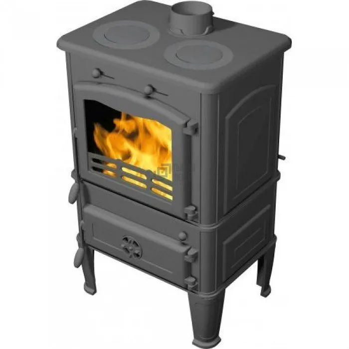 Тепловая мощность печи равна 12 кВТ, а КПД доходит до 75%. Печь DACHA имеет фронтальную загрузку дров, максимальная длина полена – 350мм. Печь способна обогреть помещение объемом до 240 куб.м. На верхней панели печи находится прочистная крышка. Топочная дверца оборудована стекло, размеры стекла: 324х270х4 мм.
