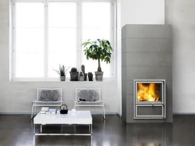 Модель выпускается в виде разделителя пространства, с топочными дверцами по обе стороны корпуса.