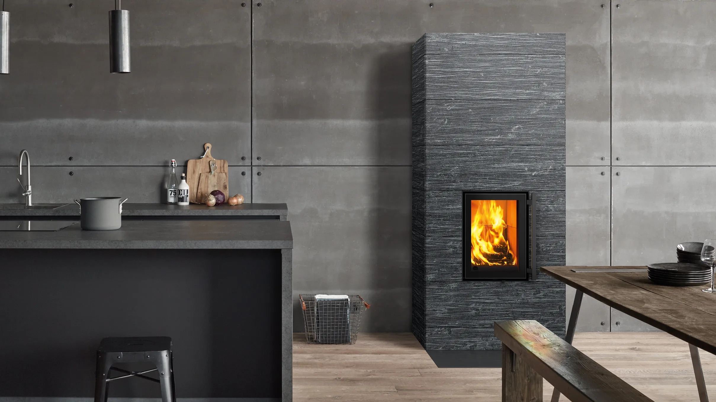 Широкая модель с боковыми каналами, что позволяет полностью прогревать всю печь, с высокой, вертикально вытянутой дверцей, придающей камину утонченный вид.