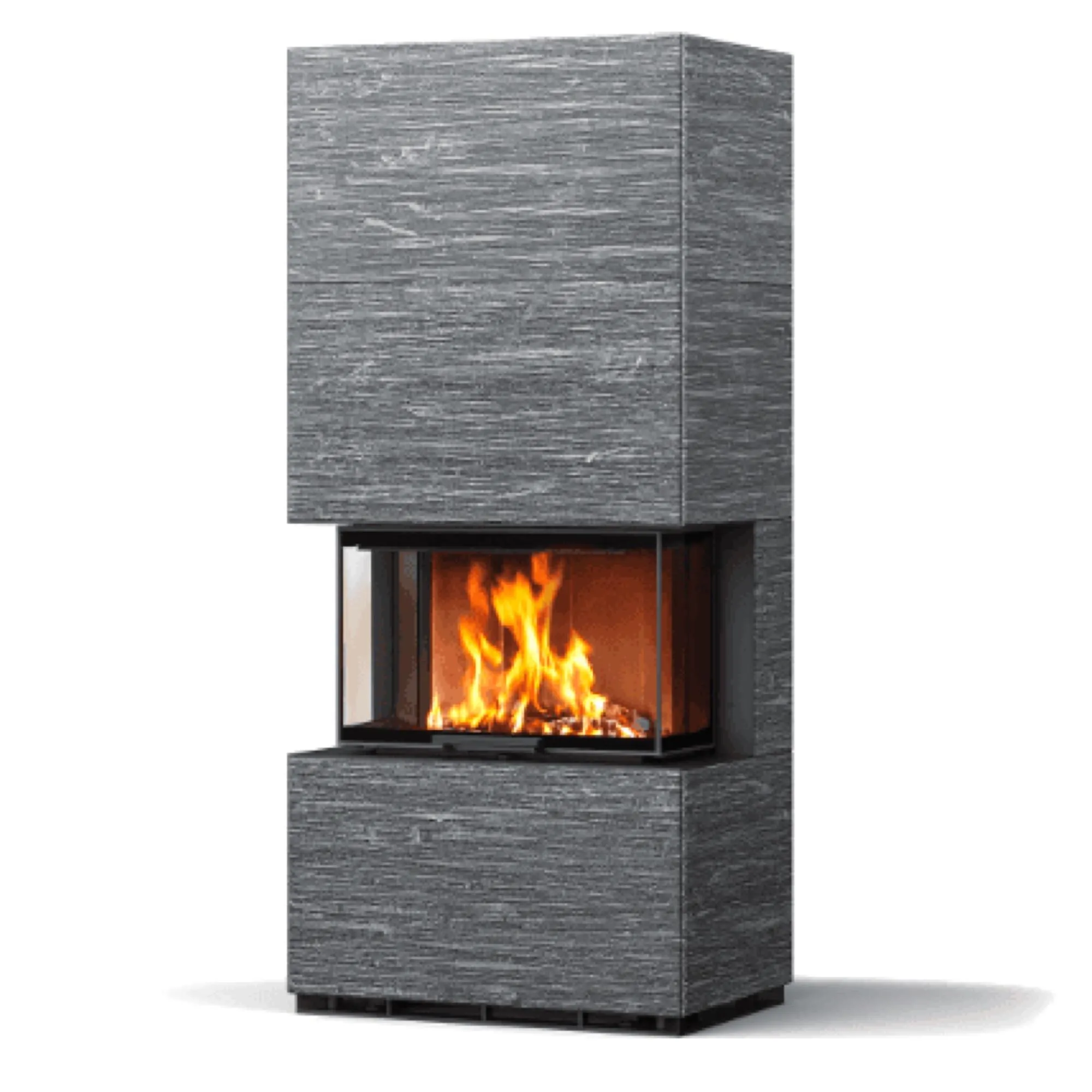 Вы заметите огонь с любой стороны комнаты благодаря трёхсторонней дверце. Этот изящный камин прекрасно впишется в любое, даже небольшое помещение.