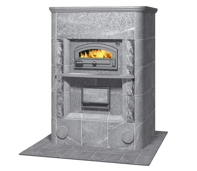 Корпус печи выполнен из шлифованного камня талькомагнезит и прекрасно держит тепло, сохраняя комфортный климат в доме на долгое время без дополнительного расхода топлива. Высокий КПД так же обусловлен особенной вихревой конструкцией.