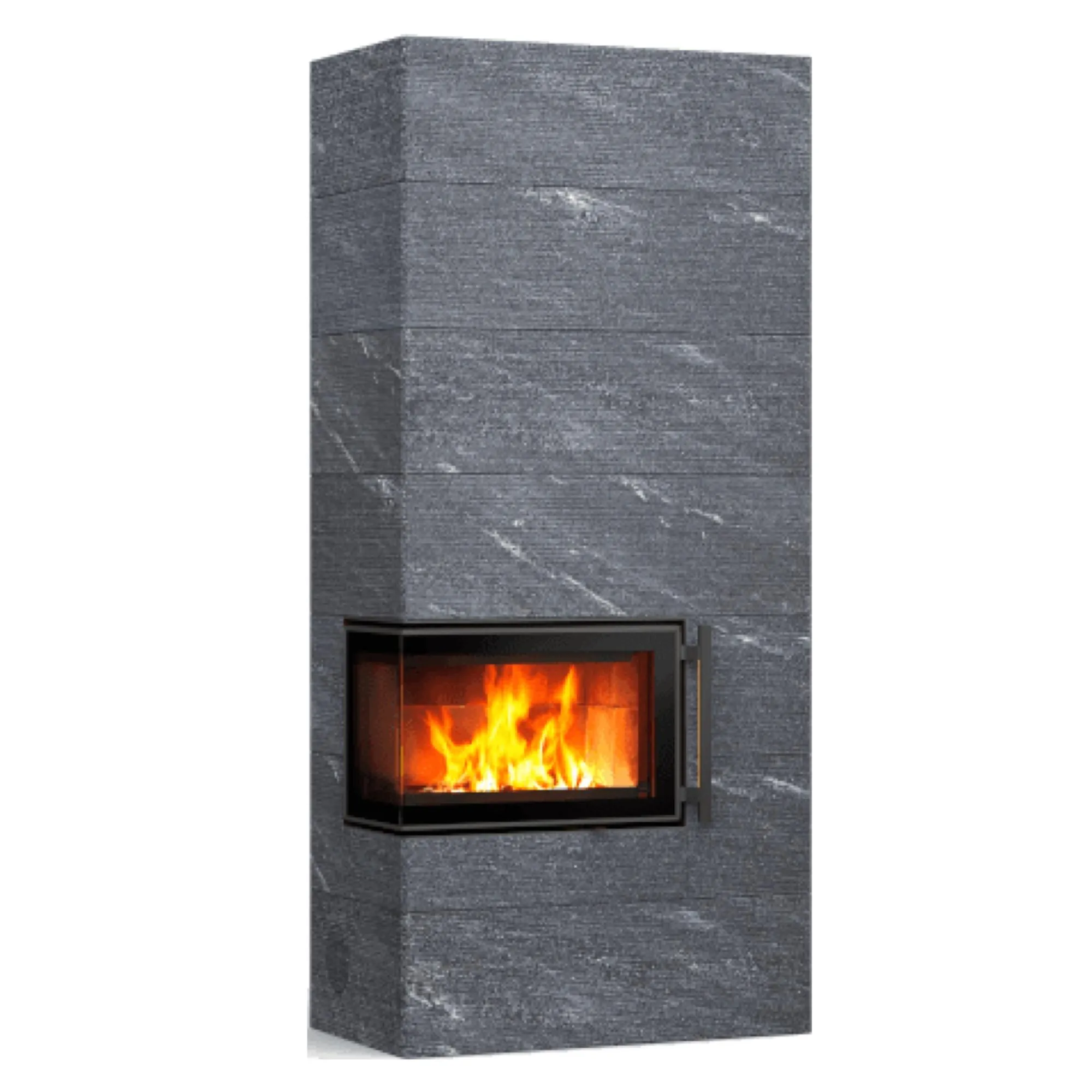 Камин может быть выполнен в трёх вариантах высоты и в различных эксклюзивных обработках поверхности камня (Classic, Nobile,Grafia), включая новую обработку поверхности камня Unica.