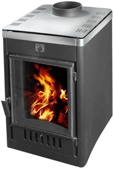 Гофрированные боковые стенки печи не деформируются при сильном нагревании и придают дополнительную жесткость конструкции. Такая система позволяет увеличить поверхность нагрева печи на 35%. КПД печи составляет до 70%.