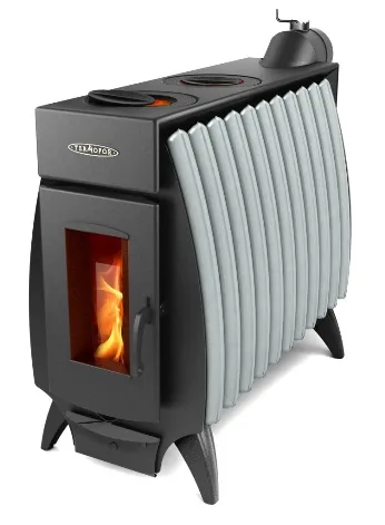 Дверца топливника у нее имеет полость, с установленным в ней уплотнителем. Он обеспечивает плотность прижима дверцы к корпусу печи. Механизм запирания надежно фиксирует дверцу в закрытом положении поворотом ручки.